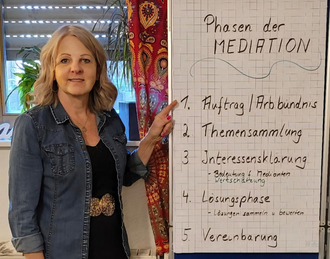 Mediation ist ein klar strukturiertes Konfliktlösungsverfahren. Der Mediator/die Mediatorin unterstützt die Konfliktparteien bei dem Prozess der gemeinsamen Verständigung.